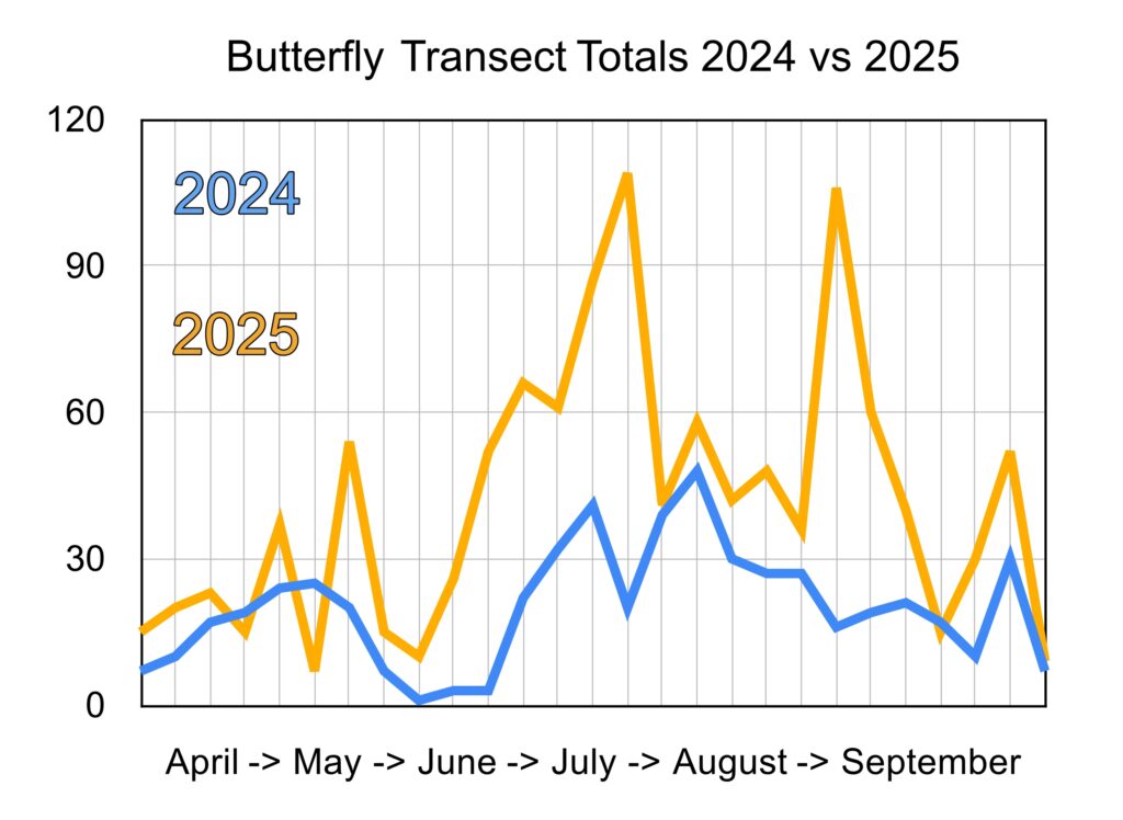Butterfly Transect Total Number of Butterflies Counted 2024 vs 2025